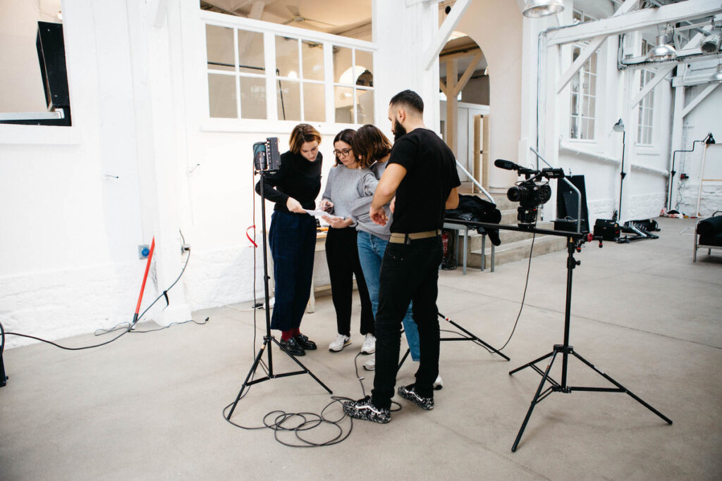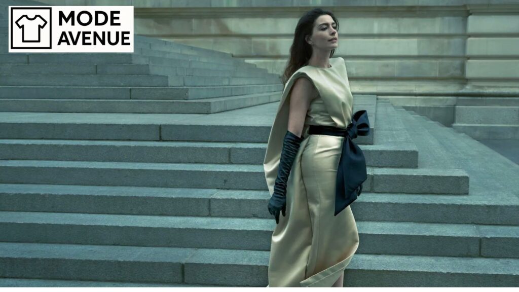 On voit une collection de vêtements éco responsables présentée sur des cintres en bois, dans une boutique moderne et chaleureuse. Les vêtements